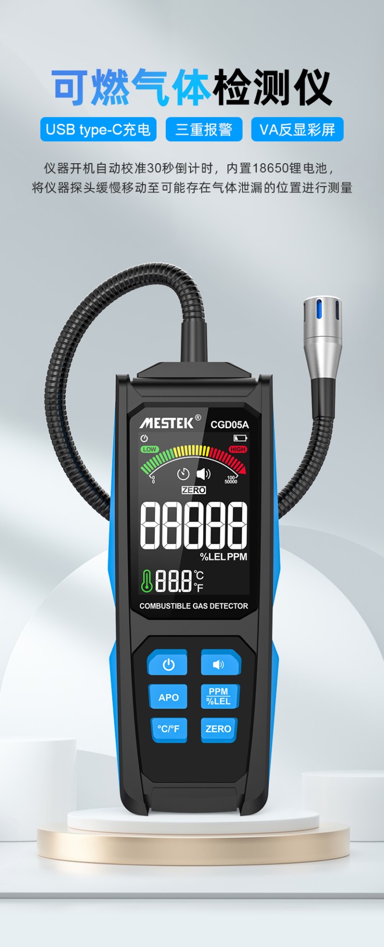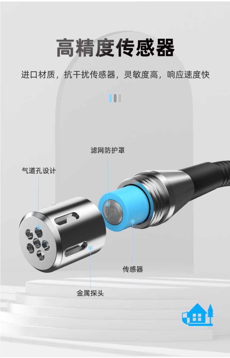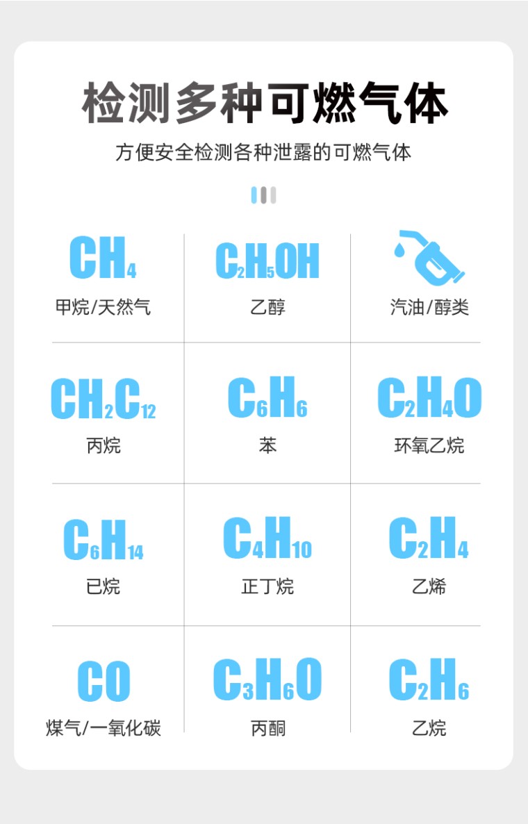 产品介绍 1、可弯曲探头设计 2、彩色VA反转显示屏幕 3、模拟/数字双显示 4、可测自然气体、煤气、液化天然气 5、测量范围:0~100%LEL / 50~50000ppm(以甲烷为基础) 6、测量精度:<±5%LEL / <±500ppm 7、温度测量范围:0~50℃(±1℃) 8、探测流程:1升每分钟 9、柔性金属软管长度:27厘米 10、样本模型:扩散类型 11、2秒响应速度 12、开机30秒自动校准 13、10分钟无操作自动关机
