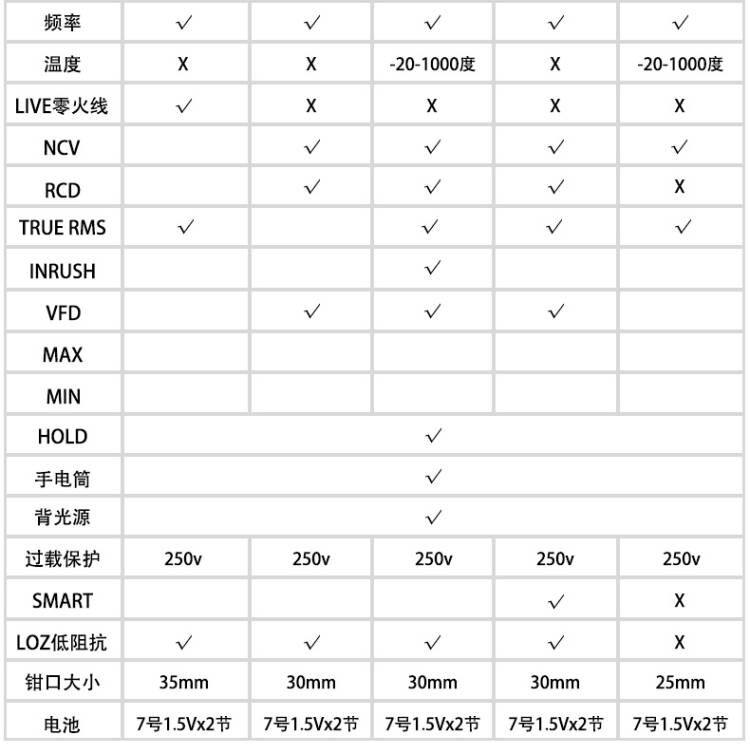产品介绍 1、电阻测量(0-10MΩ) 2、通断蜂鸣/二极管 3、600V交直流电压 4、电容/电阻测量 5、NCV非接触式电压探测 6、钳头照明/屏幕背光 7、数据保持 8、T-Rms真有效值 9、自动低阻抗电压探测 10、RCD漏电保护测试 11、VFD变频电流测量 ![]()